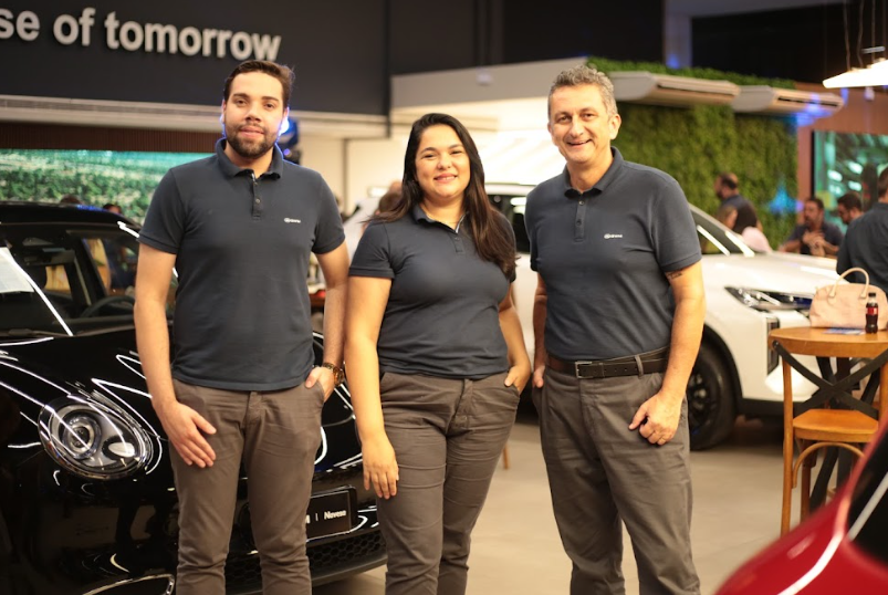 Os gerentes comerciais Higor Barbosa, Evandro Araújo e a supervisora de marketing Isadora Beltrão receberam os convidados no lançamento do Mobility Day, o programa PCD GWM Navesa (Foto: Fabrício Barreto)