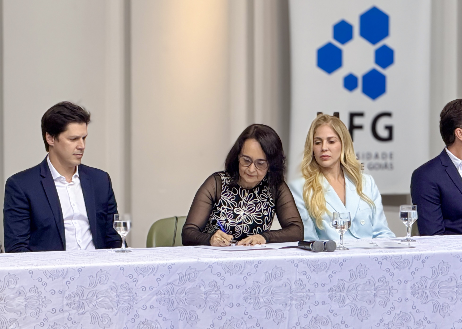 A documento de posse foi assinado pela reitora da UFG, Sandramara Matias Chaves. O vice-governador, Daniel Vilela, o prefeito de Aparecida de Goiânia, Leandro Vilela, entre outras autoridades e personalidades, compareceram ao evento.