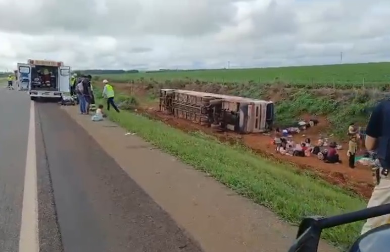 Goiânia – Um ônibus com 48 ocupantes tombou na manhã desta quarta-feira (17/12) na BR-050, no km 198, sentido Norte, no município de Campo Alegre de Goiás (GO). O acidente deixou cerca de dez pessoas gravemente feridas, enquanto os demais passageiros sofreram lesões leves. Não há registro de mortes.