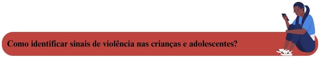 Alterações comportamentais: conduta hipersexualizada ou incompatível com a idade, automutilação, masturbação compulsiva, agressividade, mudanças no padrão de sono e alimentação, pesadelos, enurese, fugas, choro frequente, aparência suja e descuidada, resistência em participar de atividades físicas, distanciamento social, reclusão ou isolamento, prática de delitos, entre outros.