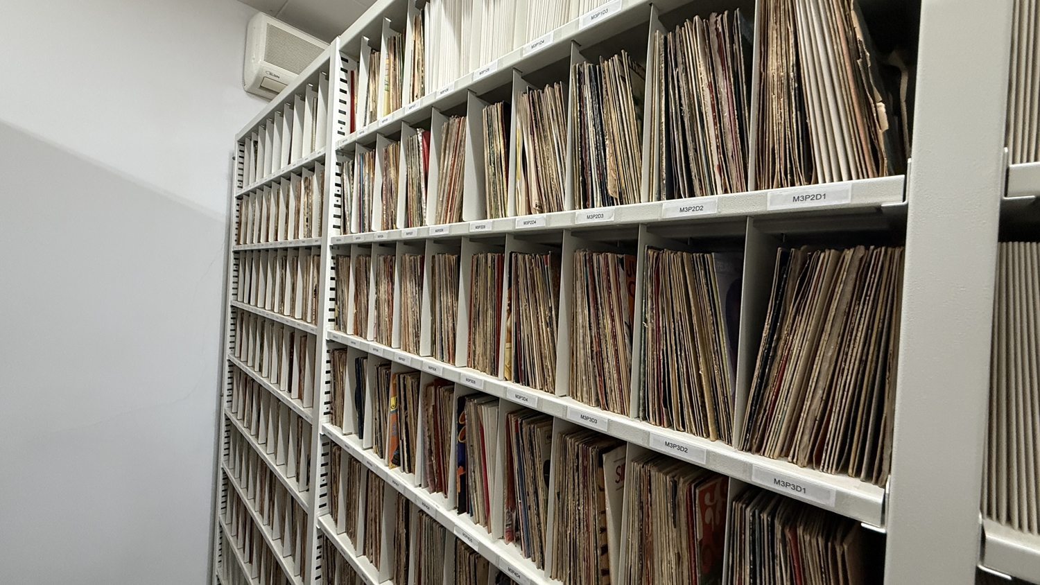 O percurso do acervo acompanha a própria evolução da indústria fonográfica. Dos discos de cera, com apenas uma música de cada lado, o acervo avança para os LPs de 10 polegadas (comuns nos anos 1950, com quatro faixas por lado), até chegar ao vinil de 12 polegadas, que dominou o mercado até o final da década de 1980. “O vinil nunca deixou de existir. Existe um apego muito grande, uma memória afetiva ligada a esse formato”, observa Gisele.