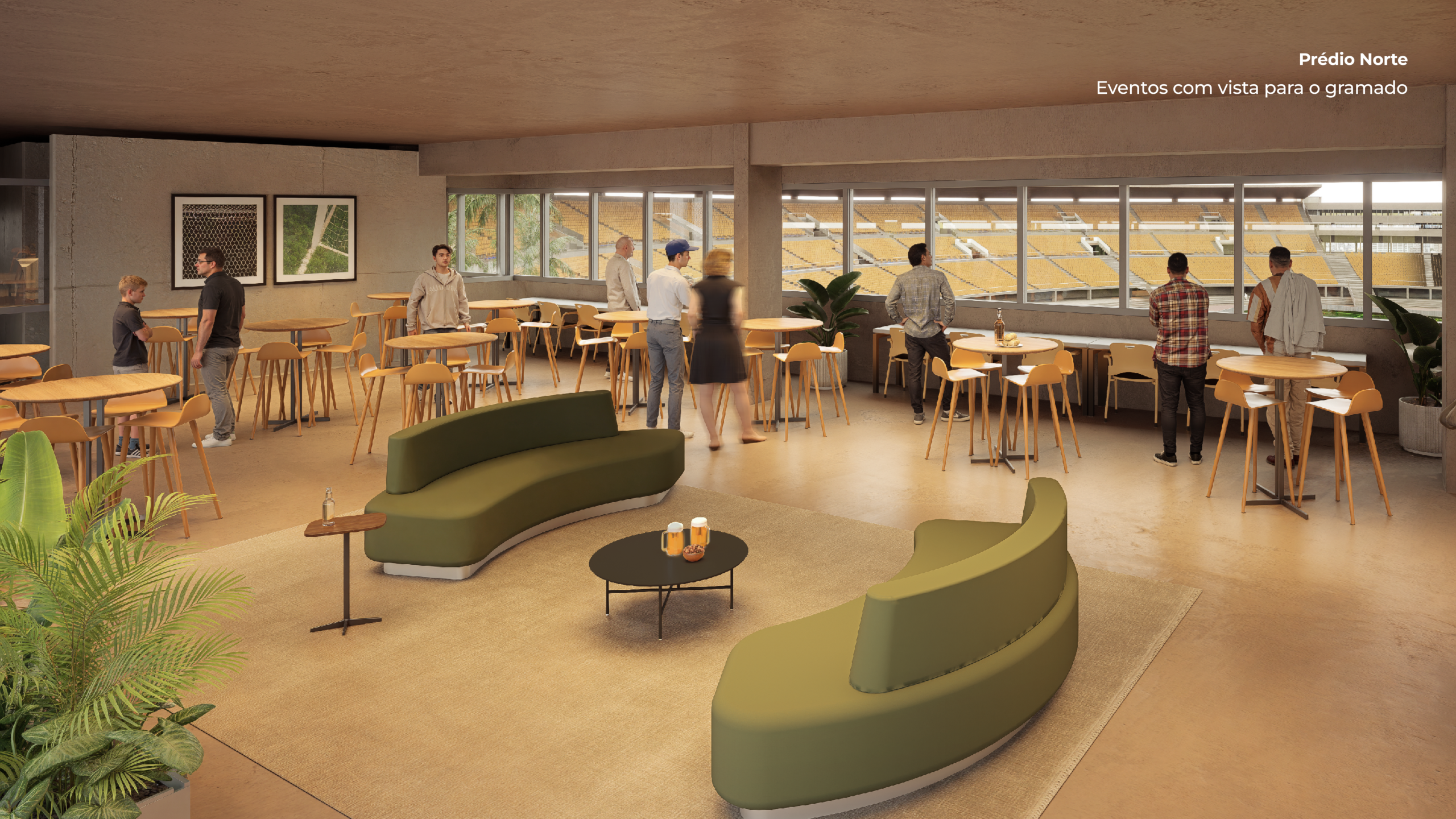 Criação de mais de 60 camarotes, incluindo unidades no nível do gramado — padrão popularizado na NFL e inédito no Brasil — além de suítes climatizadas e novos lounges;