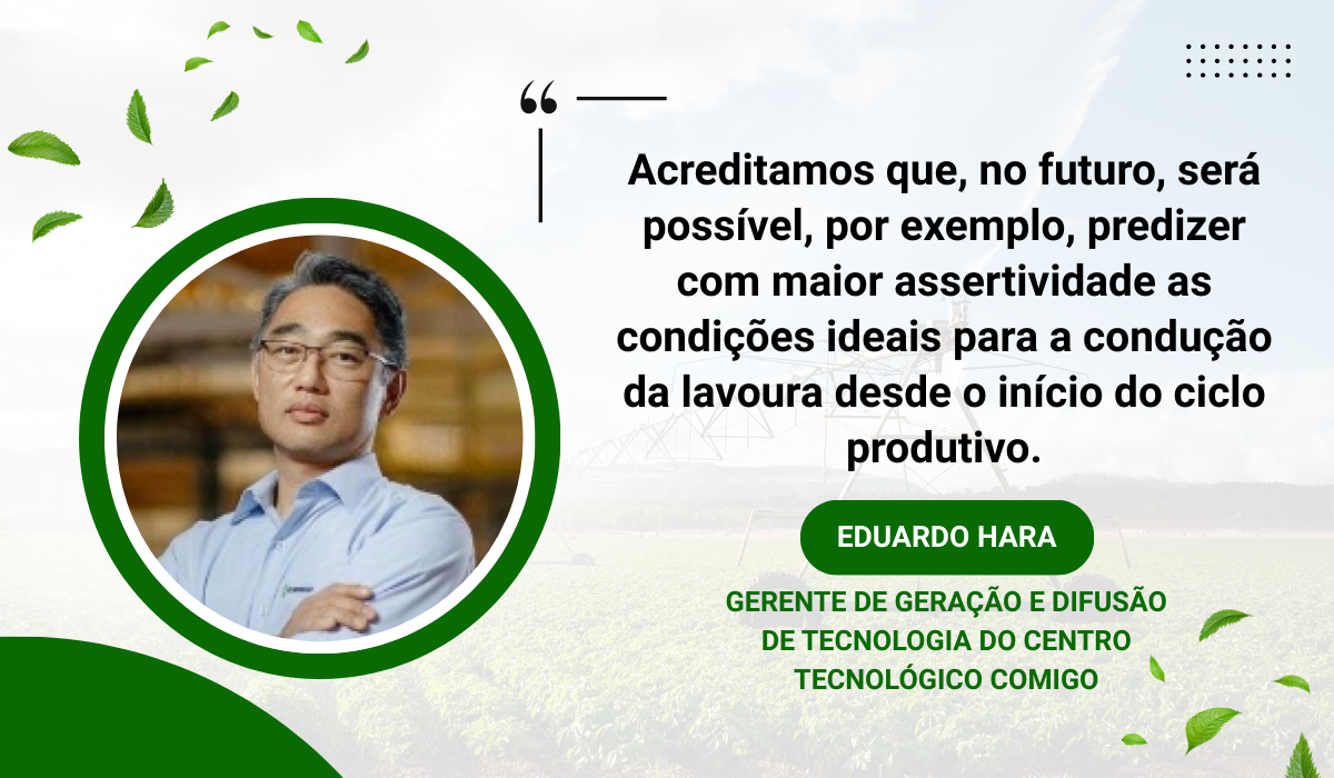 Para Eduardo Hara, gerente de geração e difusão de tecnologia do Centro Tecnológico Comigo, a inteligência artificial tende a se tornar uma aliada fundamental no enfrentamento de desafios estruturais do setor. “Acreditamos que, no futuro, será possível, por exemplo, predizer com maior assertividade as condições ideais para a condução da lavoura desde o início do ciclo produtivo, a partir do cruzamento de informações como análise de solo, histórico climático da região, georreferenciamento em tempo real de doenças e pragas e aplicações de defensivos de forma pontual, apenas quando necessário”, destaca. “Pensando na agroindústria como um todo, o uso de gêmeos digitais permitirá a simulação, a automação e a adoção de ações preventivas mediadas, sem a necessidade de interrupção da planta industrial”, acrescenta.