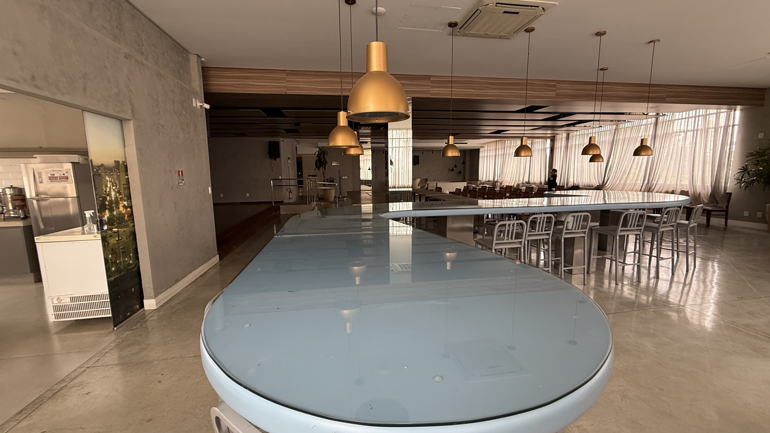 Já o segundo andar abriga um salão de eventos com capacidade para até 120 pessoas sentadas, equipado com palco, sistema de som, cozinha industrial e grandes janelas art déco, que oferecem uma vista ampla da Avenida Goiás e do Centro da cidade. O espaço pode ser utilizado gratuitamente por estruturas da OAB-GO, mediante agendamento, e é disponibilizado para locação a instituições externas à Ordem.