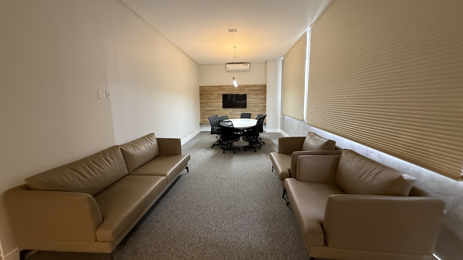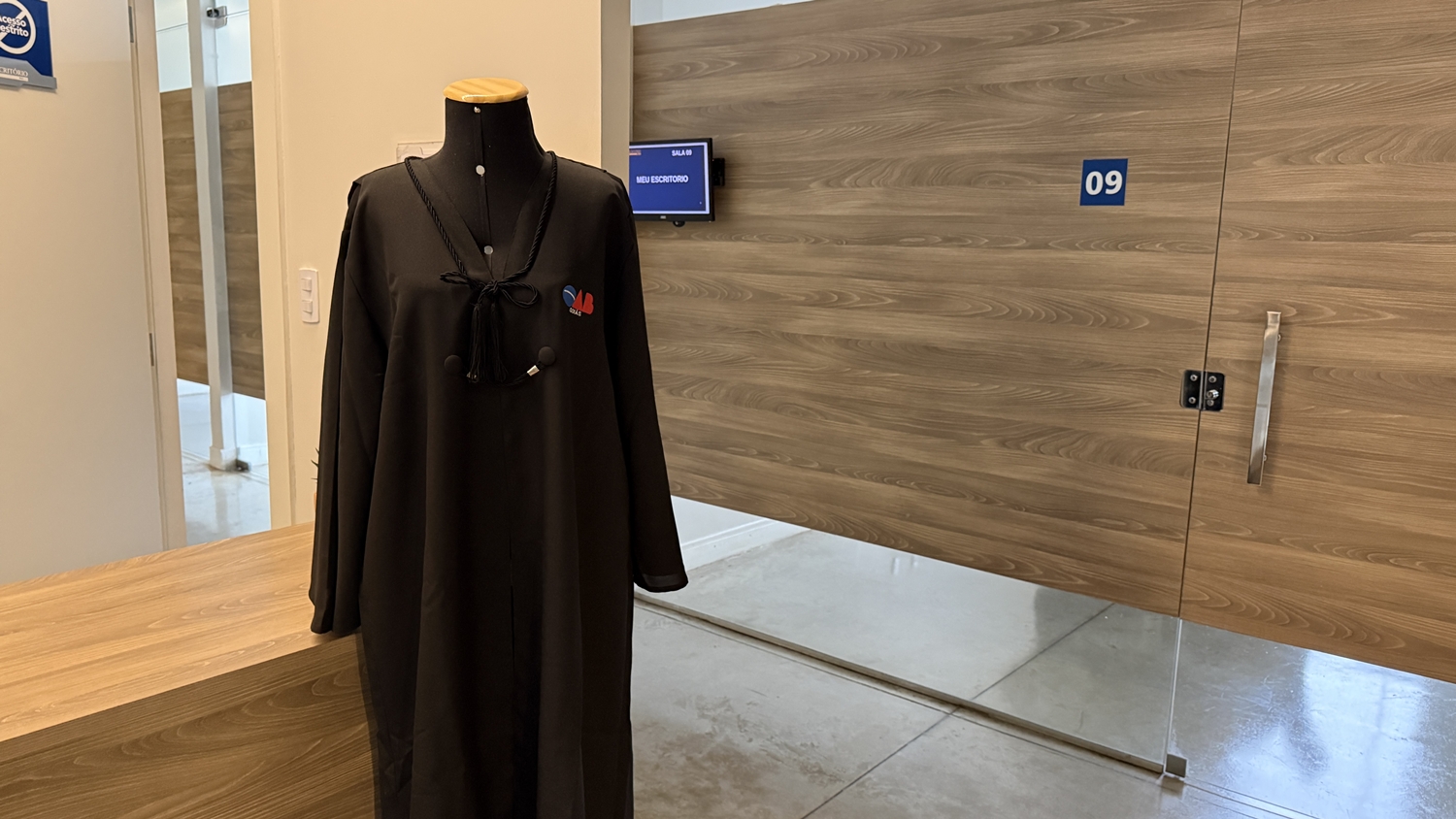 No primeiro andar, o foco é o atendimento ao cliente e a atuação profissional. São salas individualizadas para reuniões, audiências, oitivas e sustentações orais, com capacidade para até 10 ou 12 pessoas, todas equipadas com recursos tecnológicos e acústica adequada. “O advogado pode reservar digitalmente, pelo aplicativo da OAB-GO, pelo tempo que precisar. As salas têm tela com o nome do advogado, o que facilita a localização do cliente”, explica.