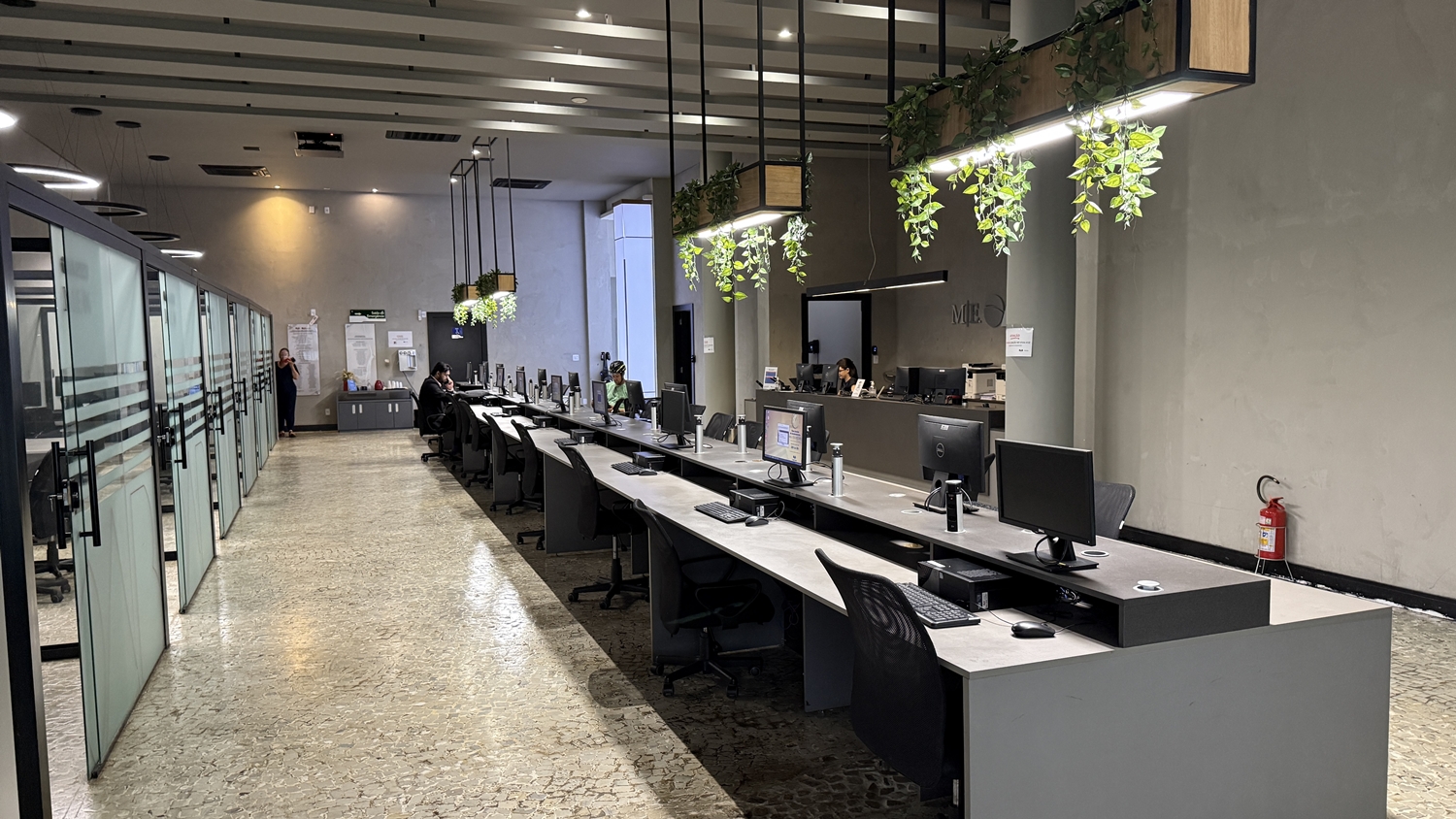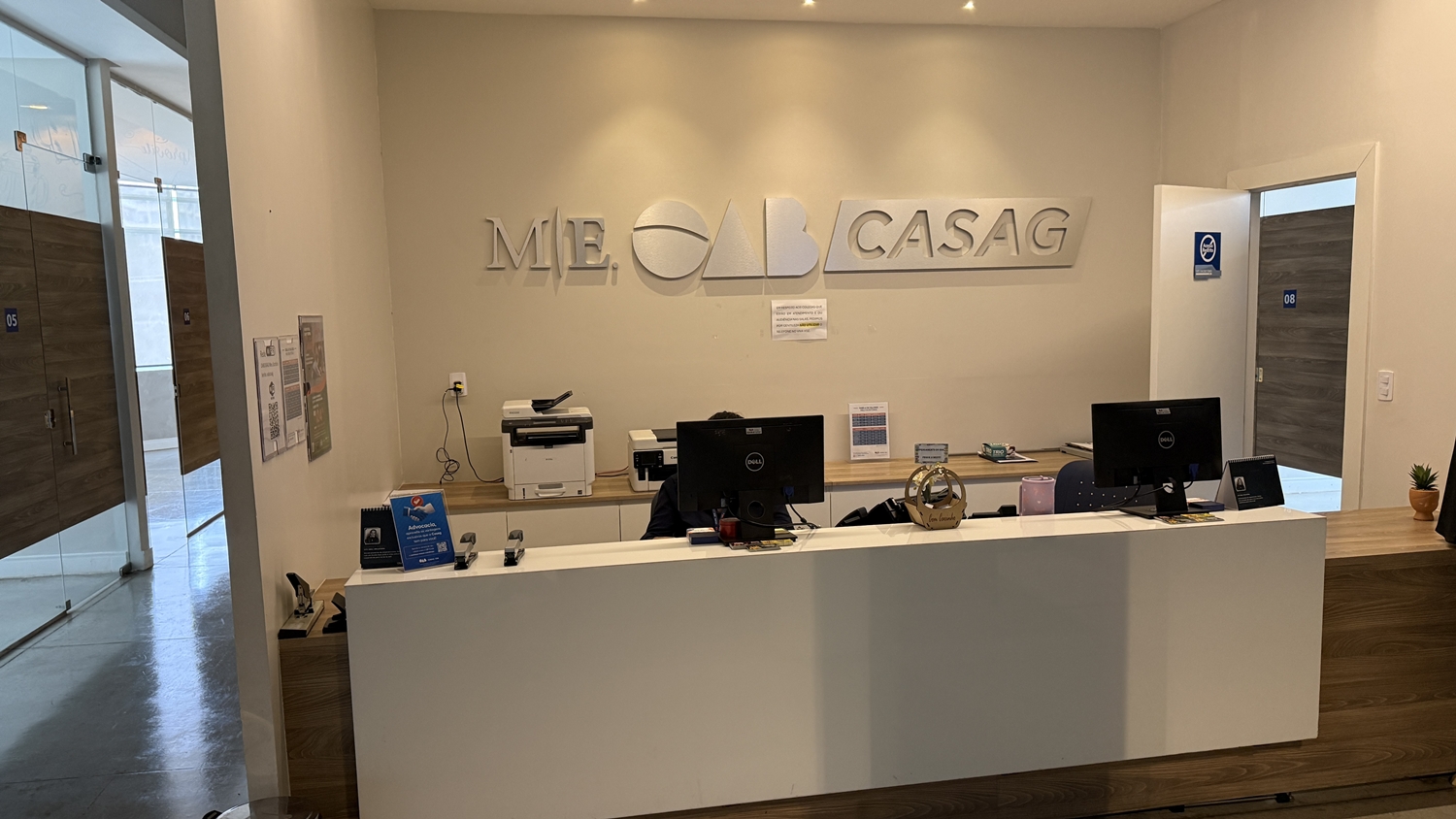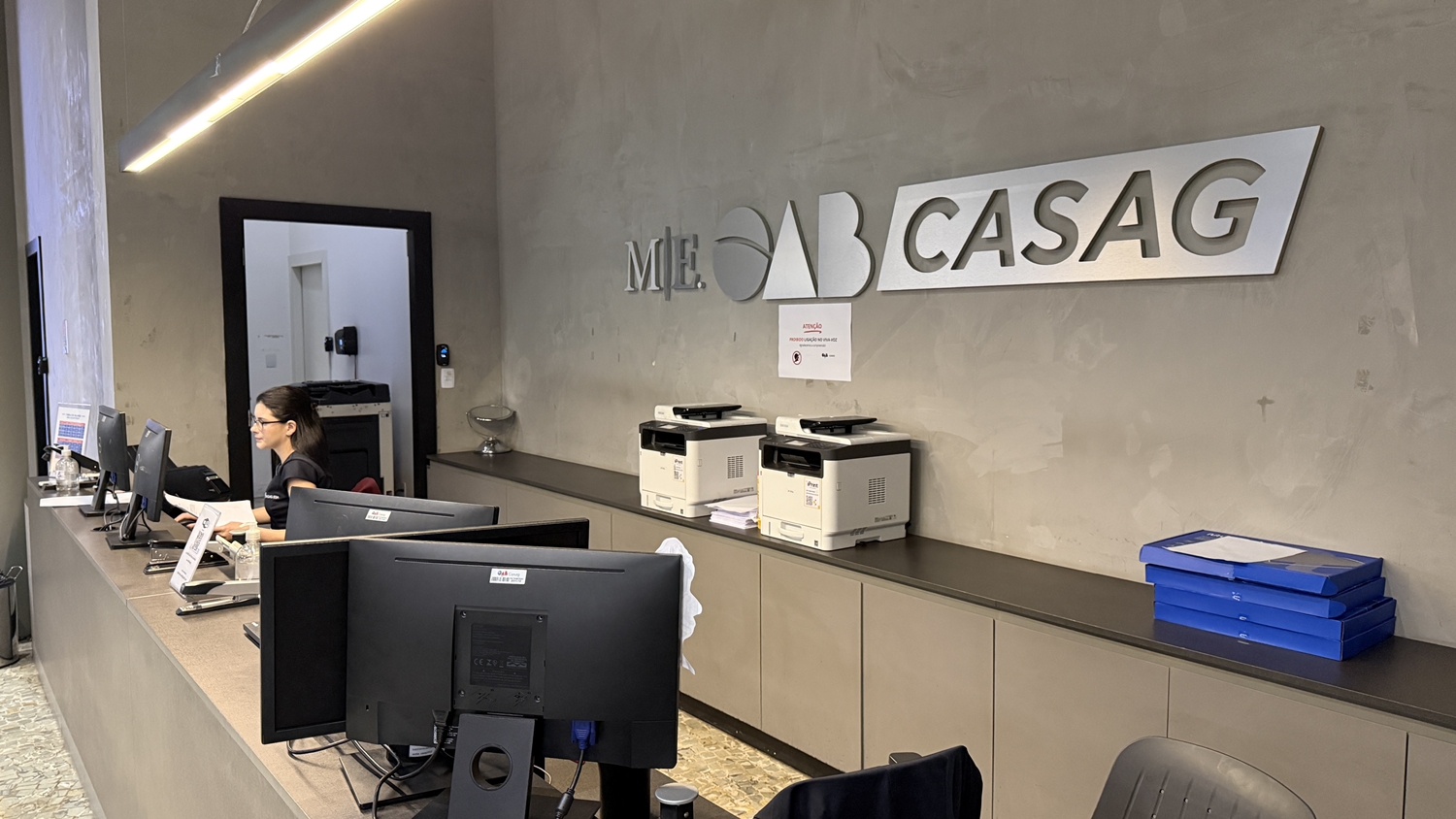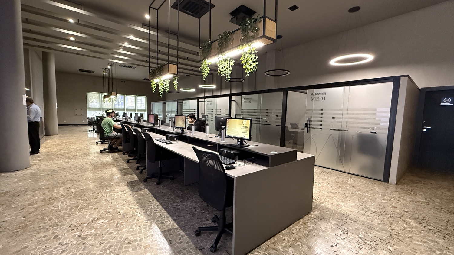 Distribuído em três pavimentos, o espaço foi planejado para atender às diferentes demandas da advocacia. No térreo, o atendimento acontece em baias e estações de trabalho compartilhadas, com computadores, salas individualizadas e equipe preparada para auxiliar no uso de sistemas como Projudi, PJe e PJe-JT. “É um atendimento personalizado para o advogado, com uma equipe que conhece tecnologia da informação e consegue resolver as demandas de forma imediata”, pontua Larissa.