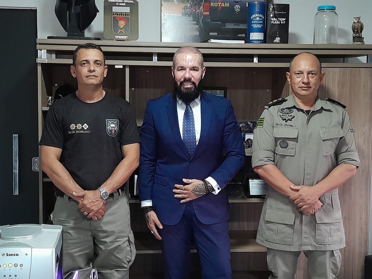 Comandante Maximiliano, Marcelo Camorim e sub-comandante Cruvinel (Foto: Divulgação)